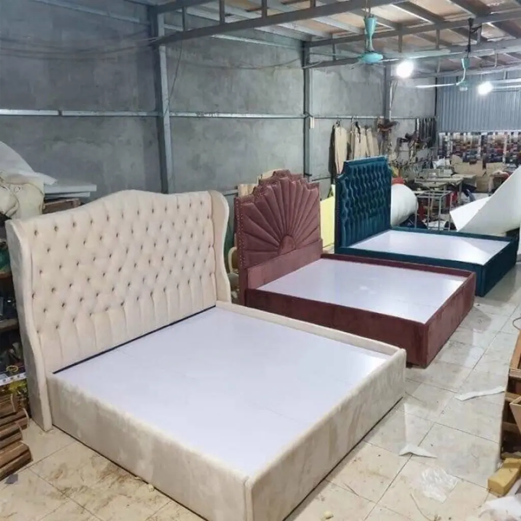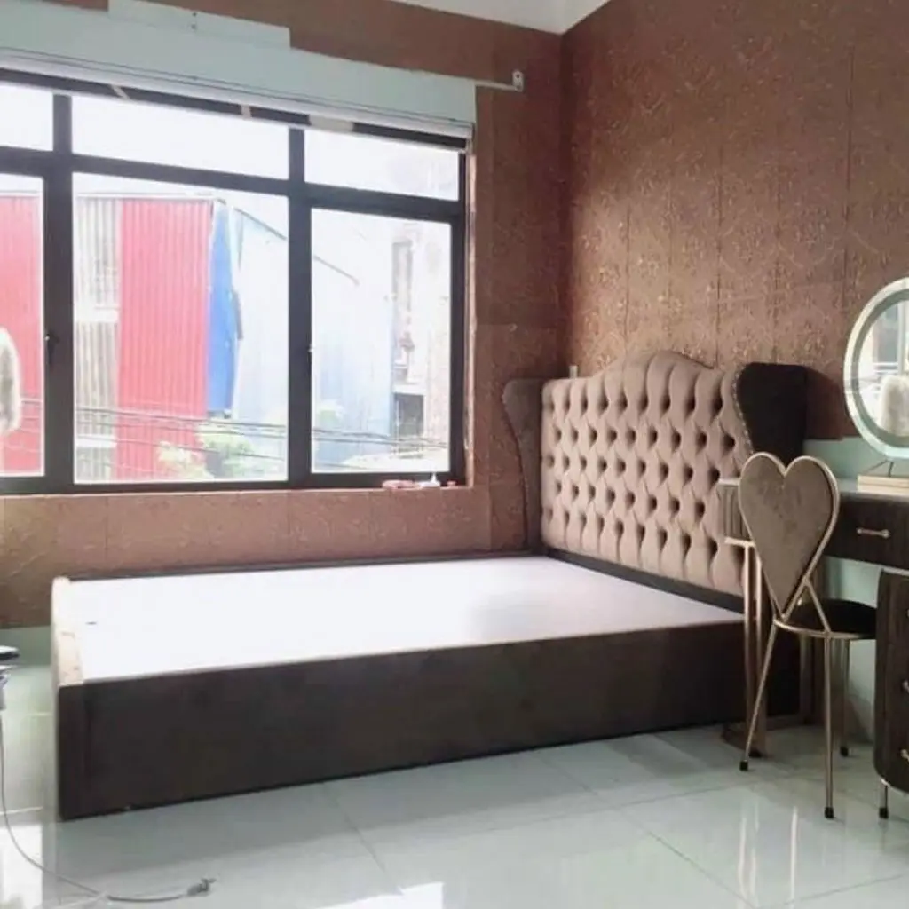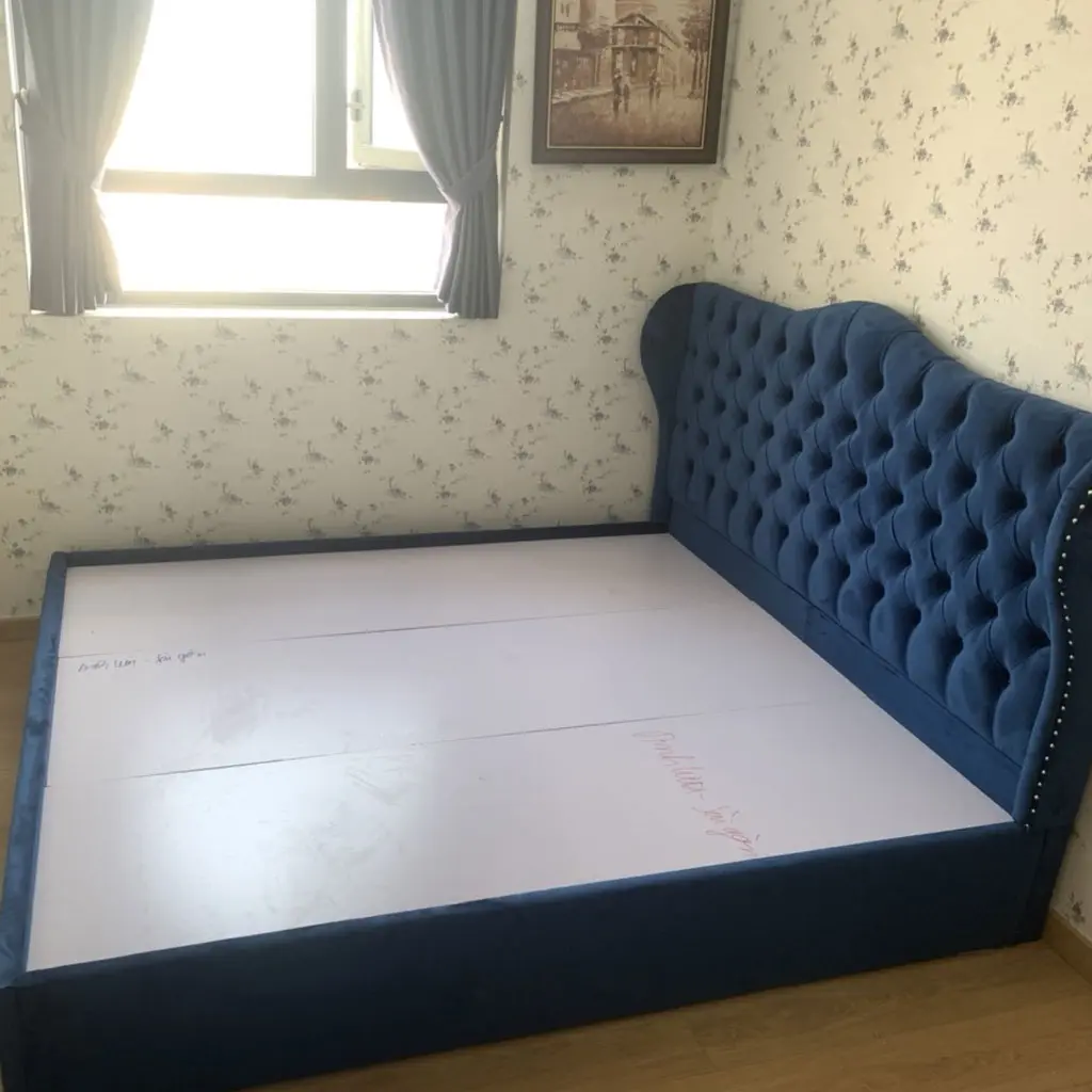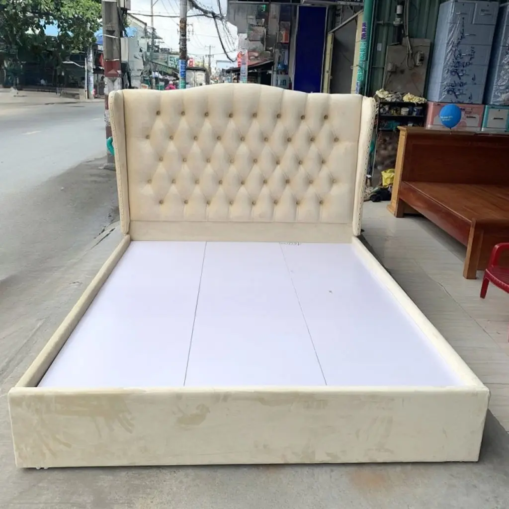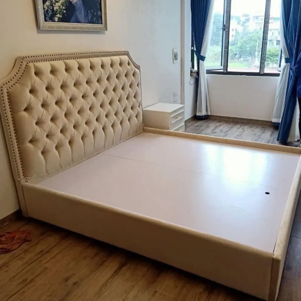 - Giường bọc vải nhung: Mềm mại, quý phái, thích hợp với không gian cổ điển.