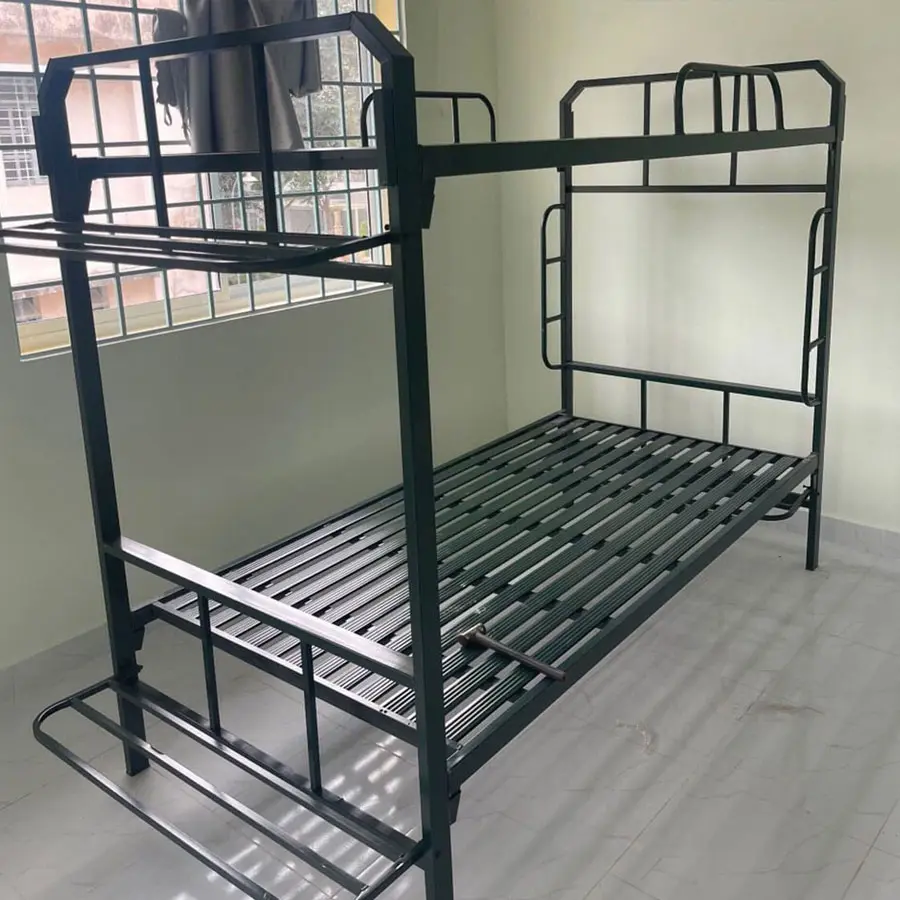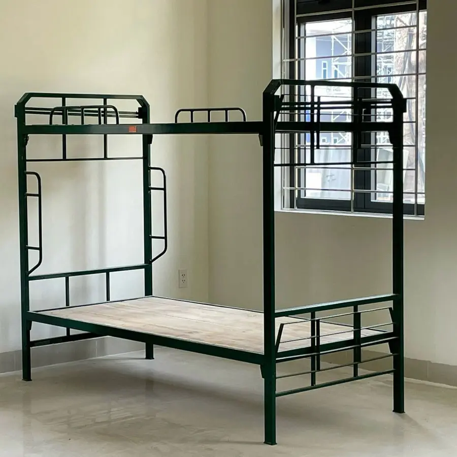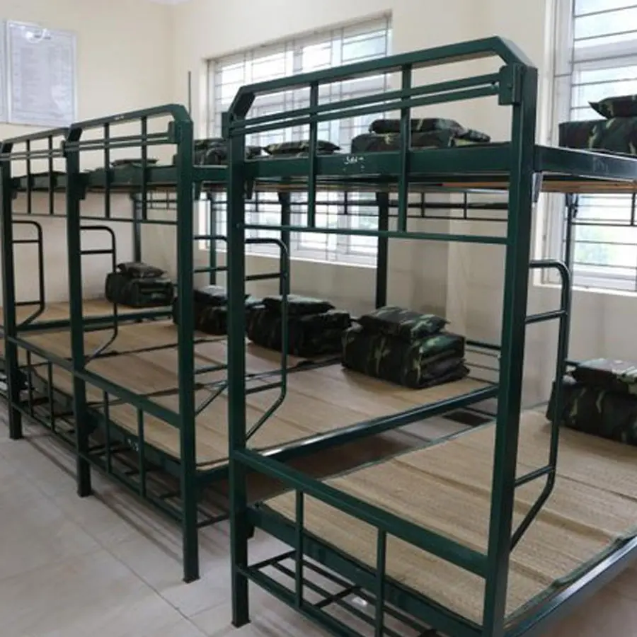 - Khu doanh trại quân đội với điều kiện sinh sống có phần hơi khó khăn cũng như khắc nghiệt của yếu tố môi trường tự nhiên và những va chạm hoặc có nhiều rung động mạnh từ người dùng. Thì giường sắt 2 tầng quân đội được thiết kế kết cấu chắc chắn với nguyên vật liệu bền bỉ, giúp chống chịu tốt những khó khăn đó. Mặt khác, vì tính thích nghi tốt với môi trường nên giường sắt 2 tầng quân đội ngày nay cũng được sử dụng nhiều ở kí túc xá, trường học nội trú.