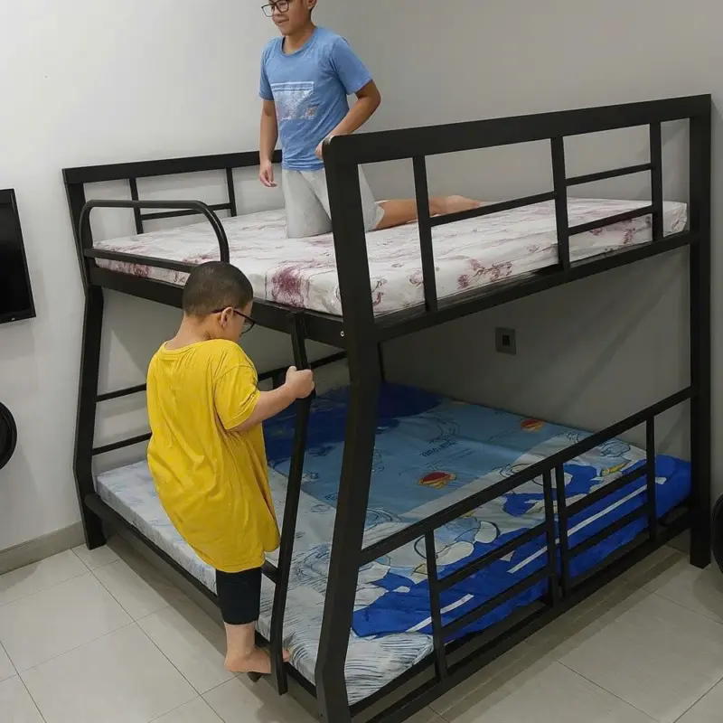 Giường sắt 2 tầng sơn đen giá rẻ có nhiều ưu điểm giúp tiết kiệm diện tích phòng, kích thước nhỏ mà vẫn cho 2 người sử dụng được.