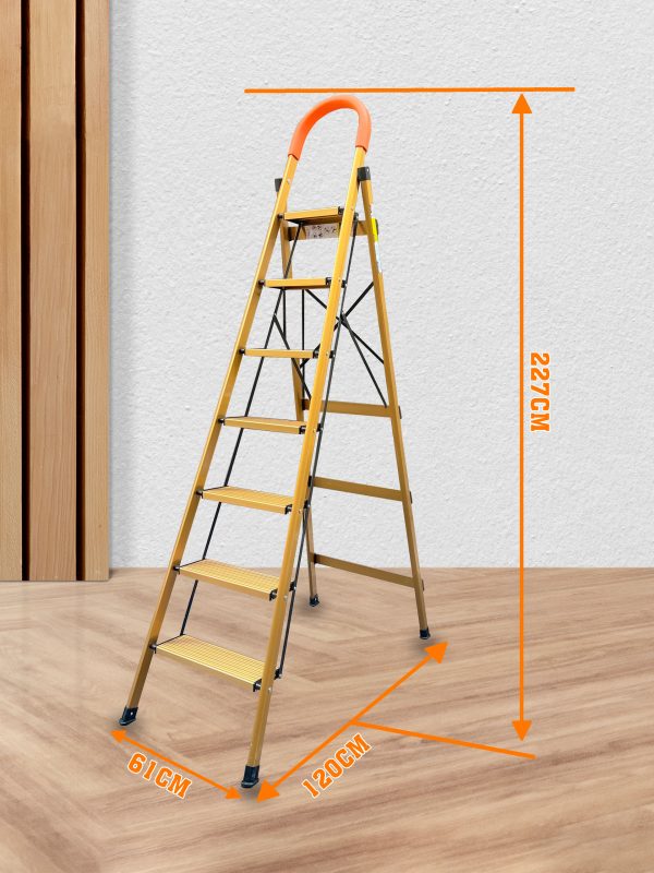 Tên sản phẩm: Thang Nhôm Ghế Tay Vịn Gold – Bậc Thang To Dễ leo Trèo, Thang Nhẹ Nhôm Dày Giá Rẻ