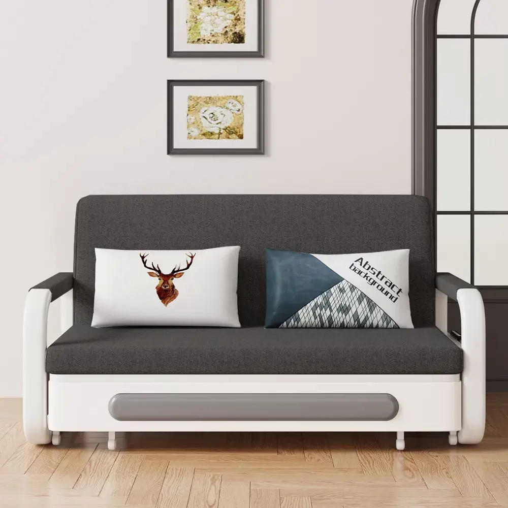 Sofa Giường Thông Minh Loại Vải Màu Xám Đen Nệm Xơ Dừa Hộc Tủ Gỗ